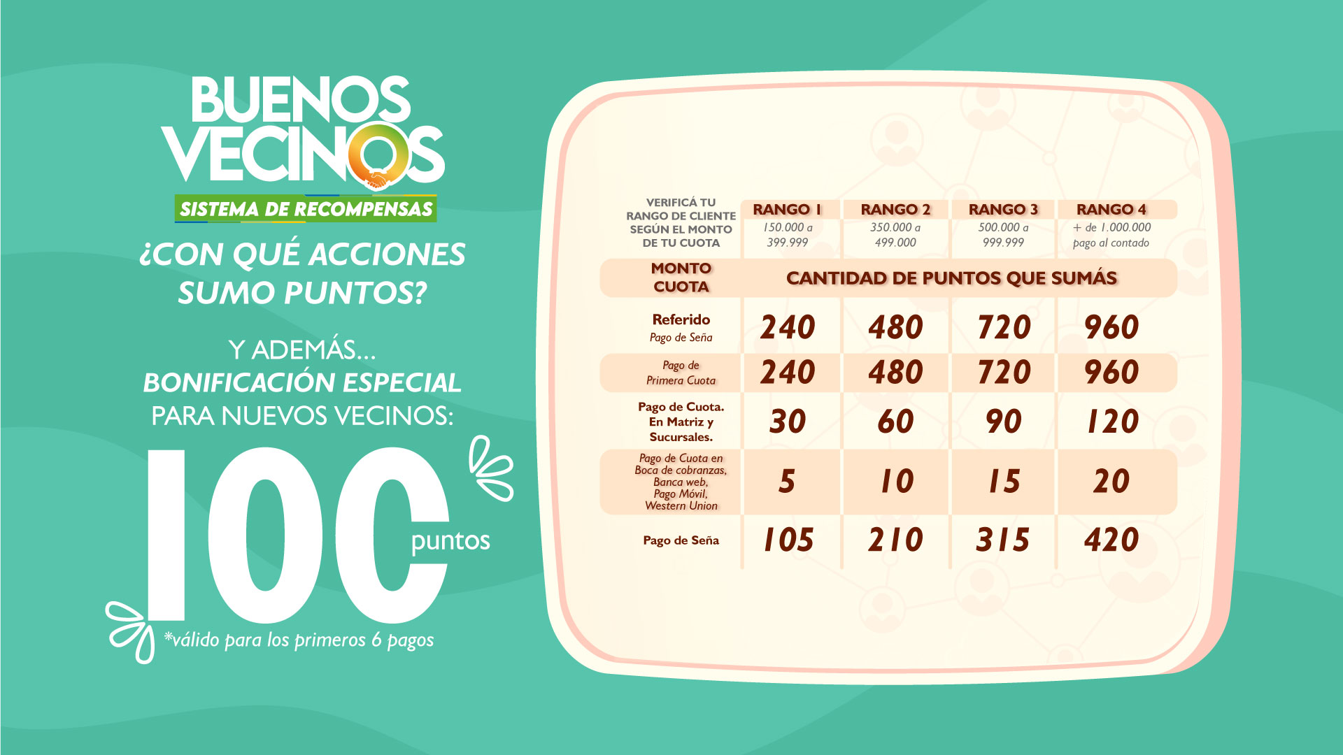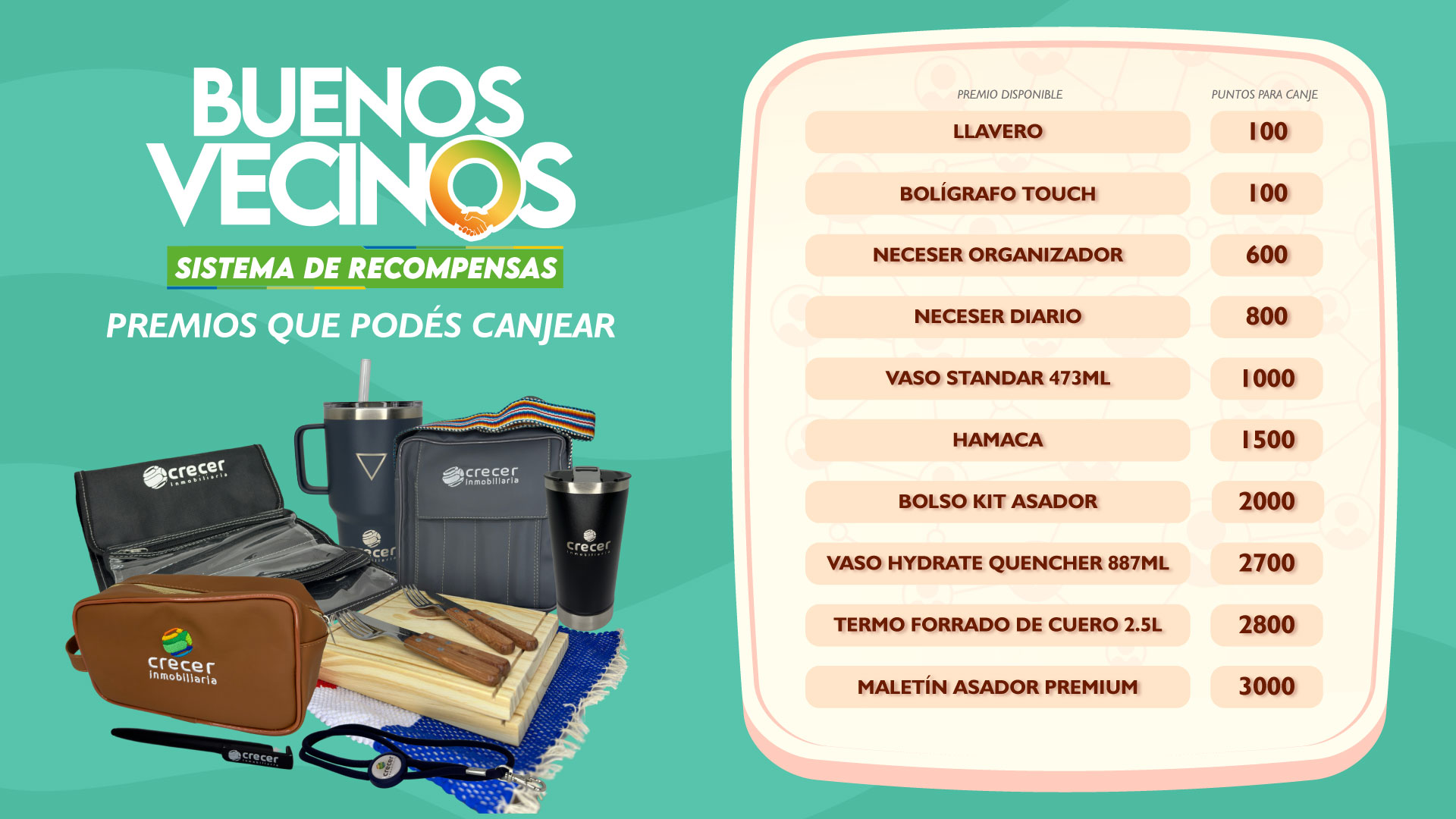 Buenos vecinos, es el sistema que te premia por todas tus acciones! con cada acción que realices acumulas puntos